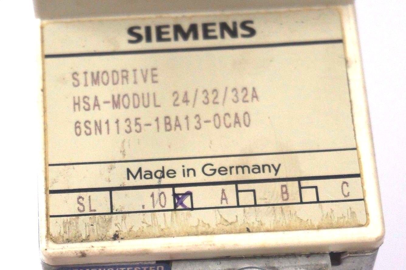 SIEMENS 6SN1135-1BA13-0CA0 HSA SIMODRIVE W/ 6SN1121-0BA11-0AA0 MODULE