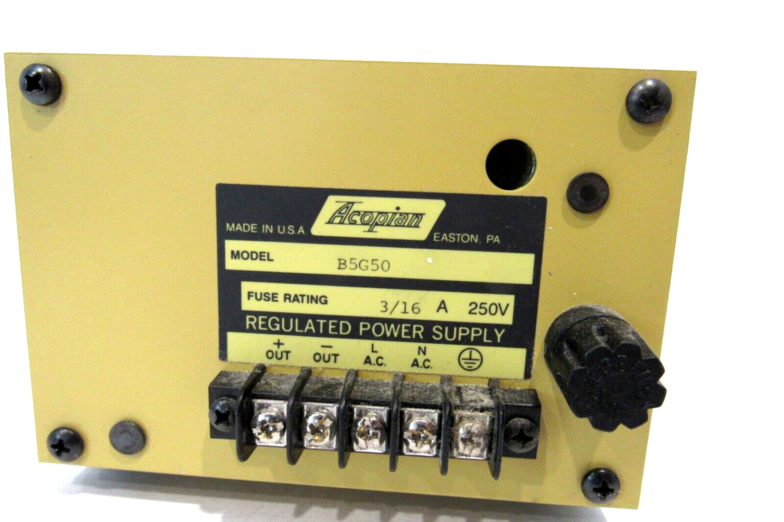 USED ACOPIAN B5G50 POWER SUPPLY$20.00 Only 1 left in stock USED ACOPIAN B5G50 POWER SUPPLY quantity Add to cart SKU: 176401507655 Category: Other Description Additional information Description USED ACOPIAN B5G50 POWER SUPPLY 593 RB Additional information Weight 3.12 lbs Brand ACOPIAN MPN B5G50 Country/Region of Manufacture United States We Buy New and Used Surplus Inventory - Sell to Us