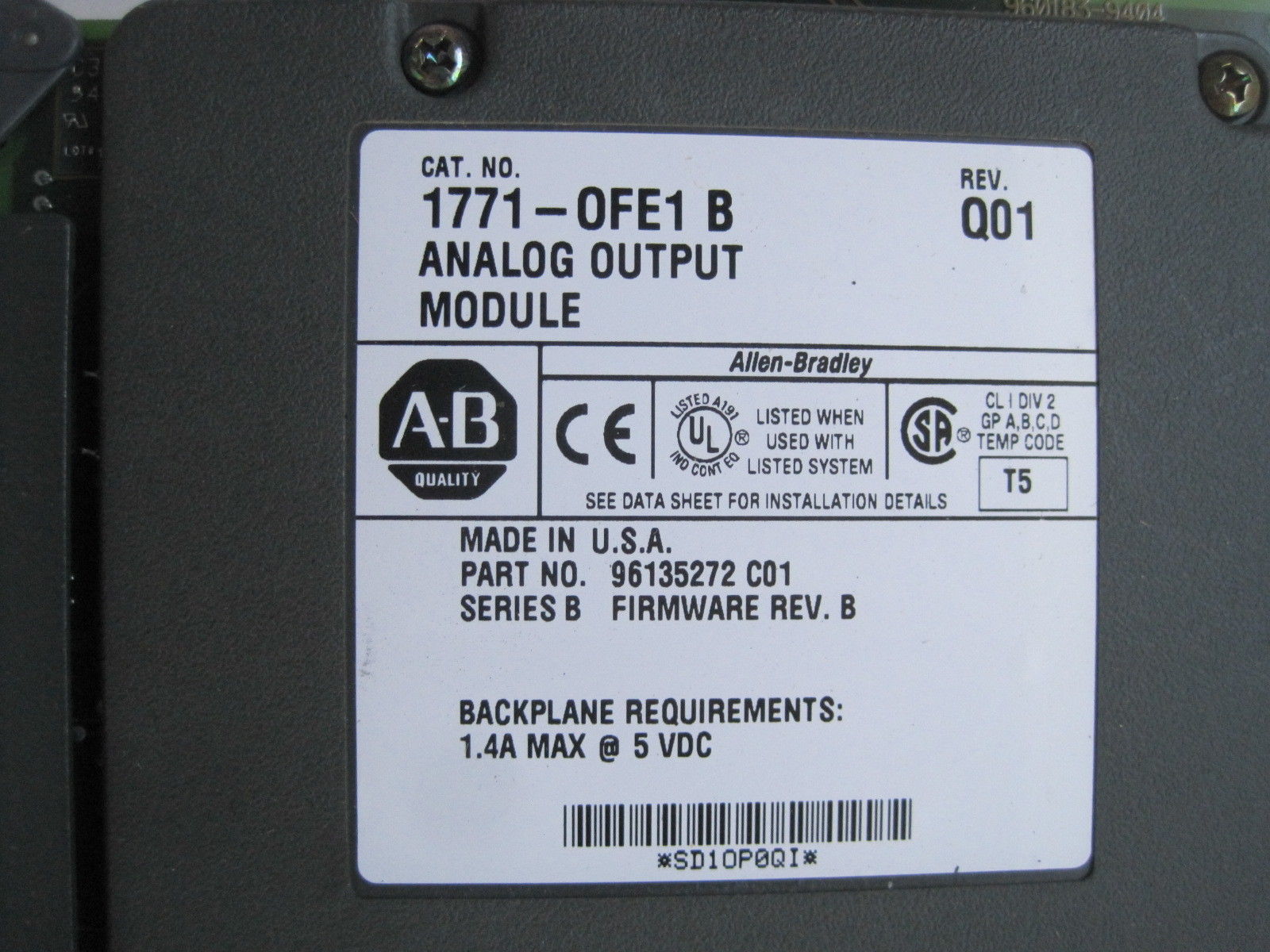 USED ALLEN BRADLEY 1771-0FE1/B OUTPUT MODULE 17710FE1B