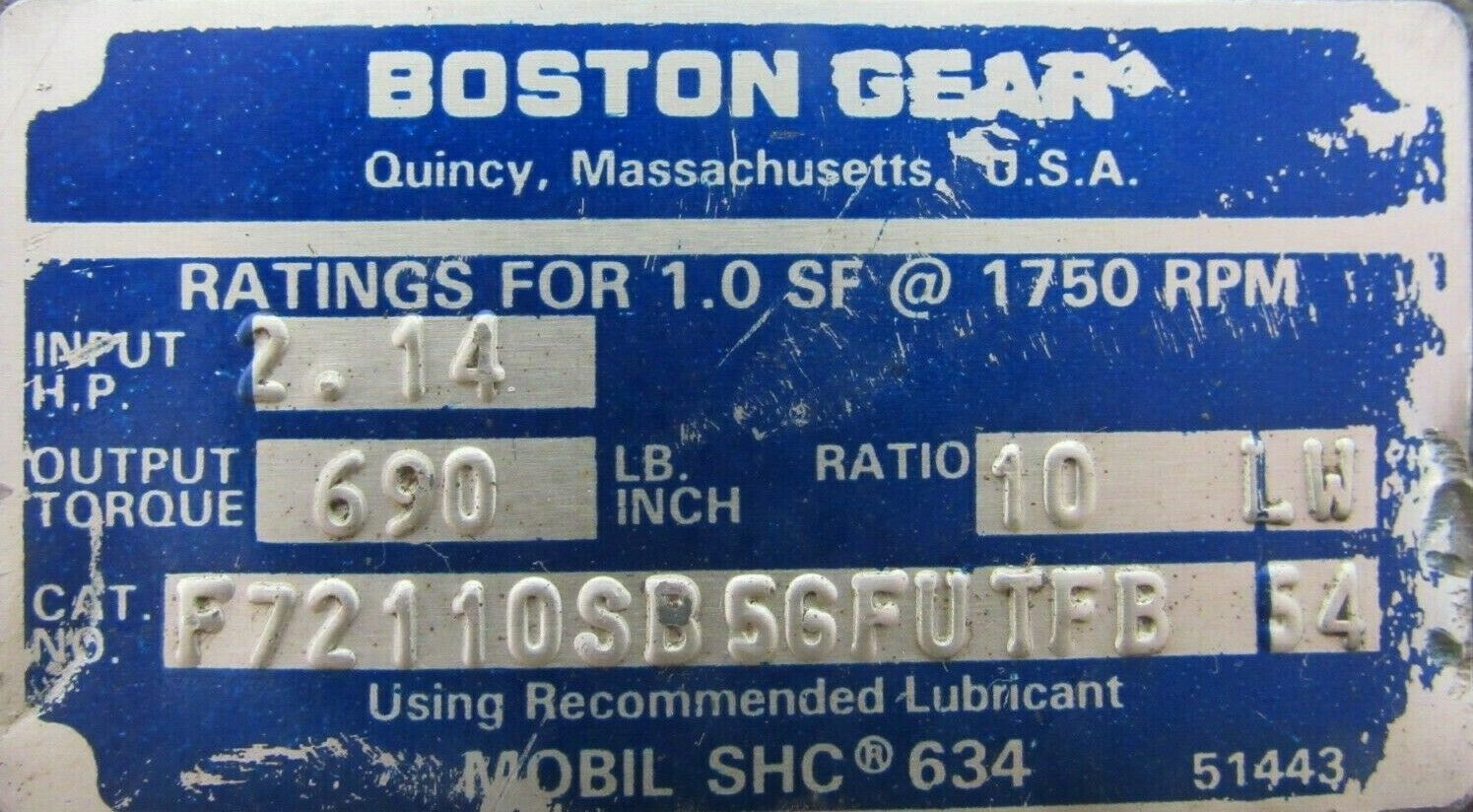 USED BOSTON GEAR F72110SB56FUTFB GEAR REDUCER 10:1