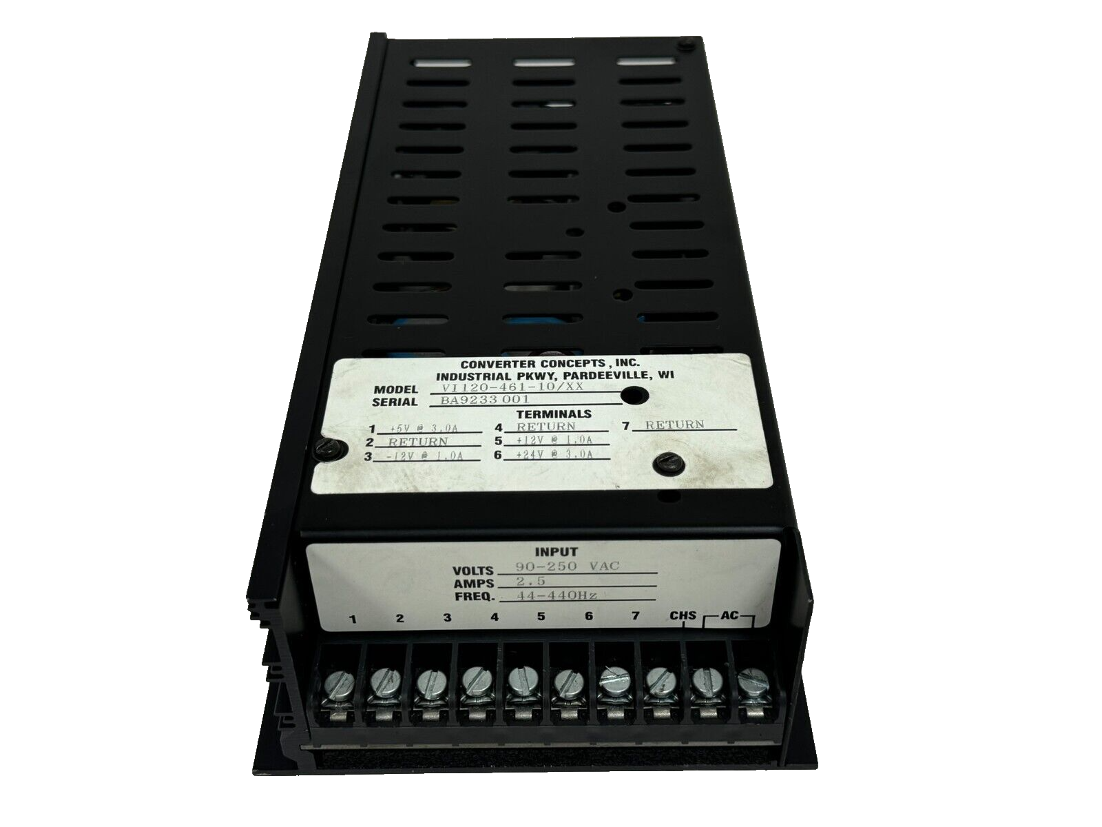 USED CONVERTER CONCEPTS VI120-461-10/XX POWER SUPPLY 90-250VAC 2.5A 44-440HZ