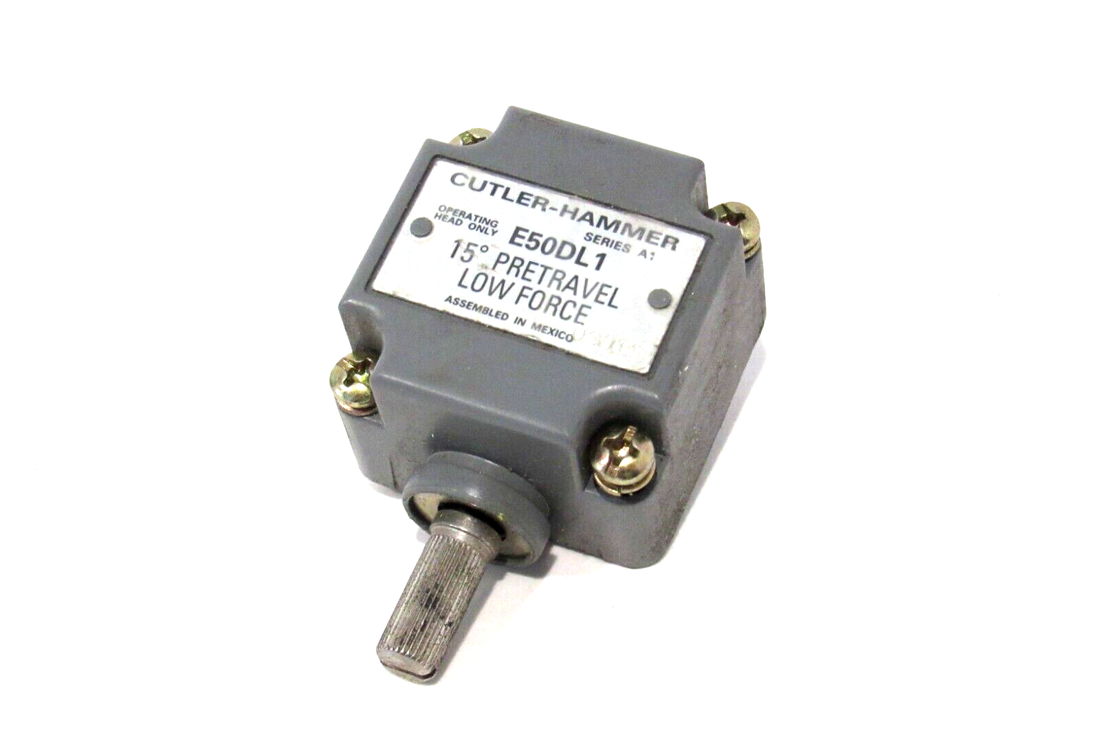 USED CUTLER HAMMER E50DL1 LIMIT SWITCH HEAD$50.00 Only 2 left in stock USED CUTLER HAMMER E50DL1 LIMIT SWITCH HEAD quantity Add to cart SKU: 354567096910 Category: Other Description Additional information Description USED CUTLER HAMMER E50DL1 LIMIT SWITCH HEAD 1971 RB Additional information Weight 0.37 lbs Brand CUTLER HAMMER Fuse Type Switch MPN E50DL1 We Buy New and Used Surplus Inventory - Sell to Us