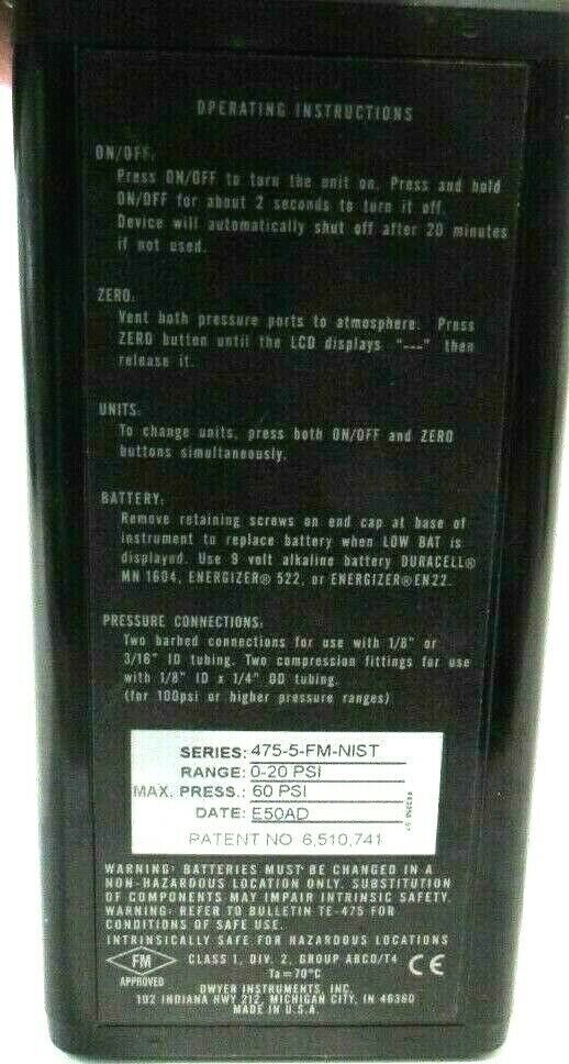 USED DWYER SERIES 475 MARK III DIGITAL MANOMETER - Image 4