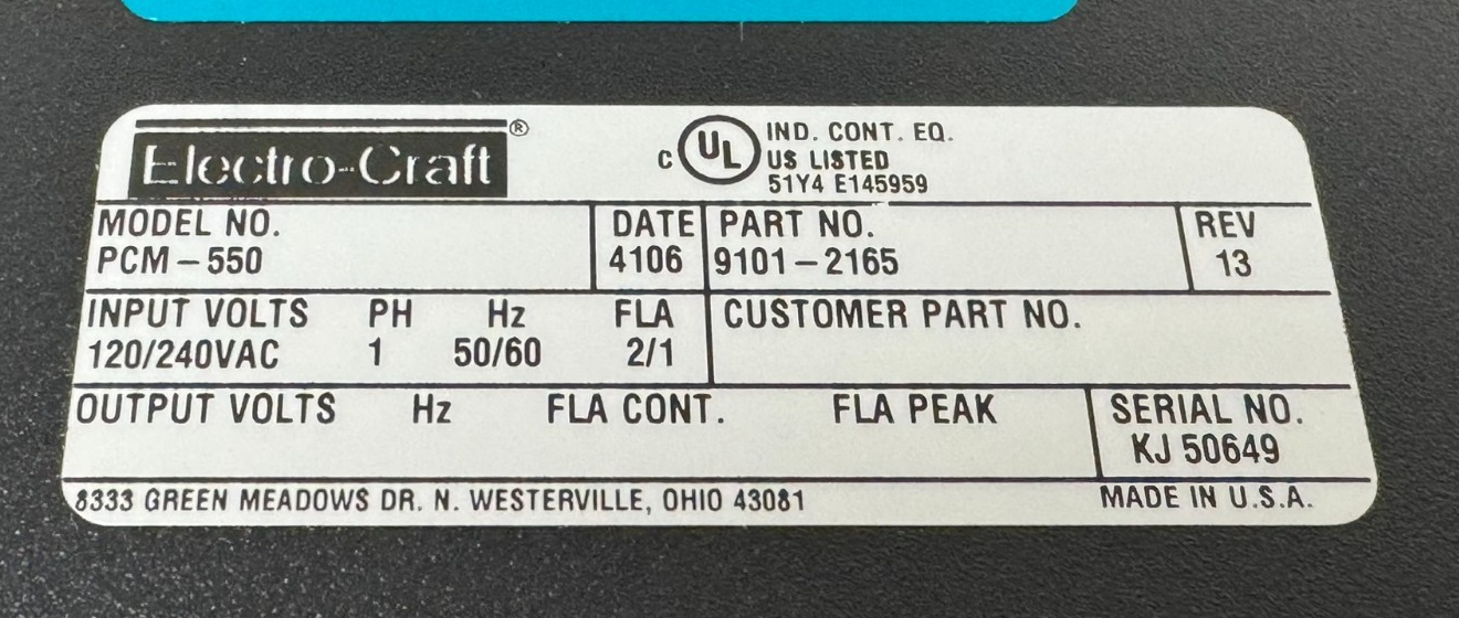 USED ELECTRO-CRAFT PCM-550 SERVO DRIVE 9101-2165 iQ550 PCM550