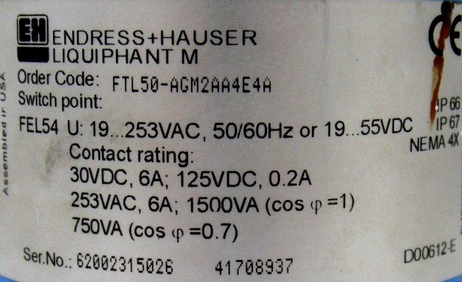 USED ENDRESS HAUSER FTL50-AGM2AA4E4A LEVEL SENSOR FTL50AGM2AA4E4A