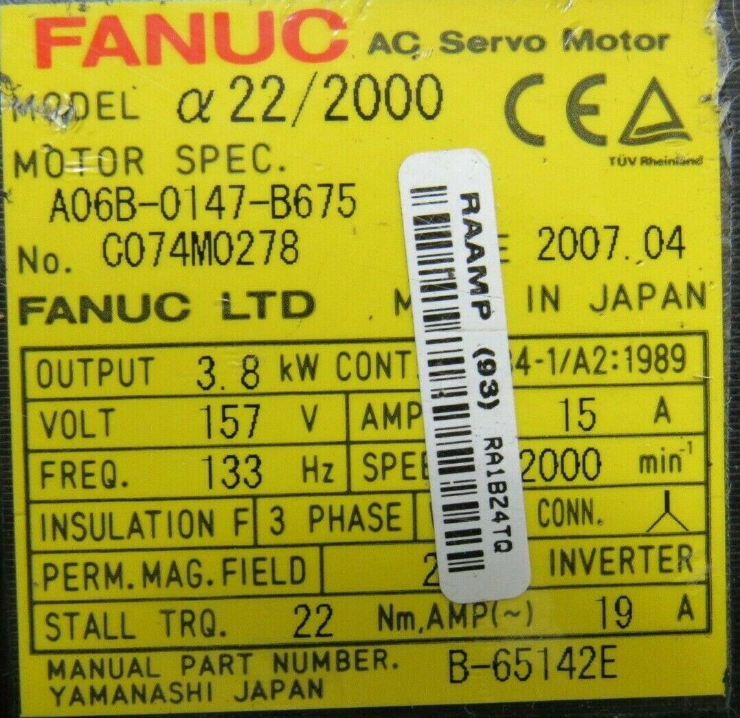 USED FANUC A06B-0147-B675 SERVO MOTOR A06B0147B675 X22/2000