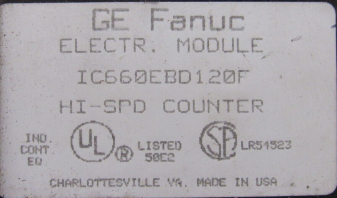 USED GE FANUC IC660EBD120F HIGH SPEED COUNTER$95.00 Out of stock SKU: 354486534991 Category: Other Description Additional information Description USED GE FANUC IC660EBD120F HIGH SPEED COUNTER B3/41BB Additional information Weight 4.00 lbs Brand GE FANUC MPN IC660EBD120F Country/Region of Manufacture United States We Buy New and Used Surplus Inventory - Sell to Us