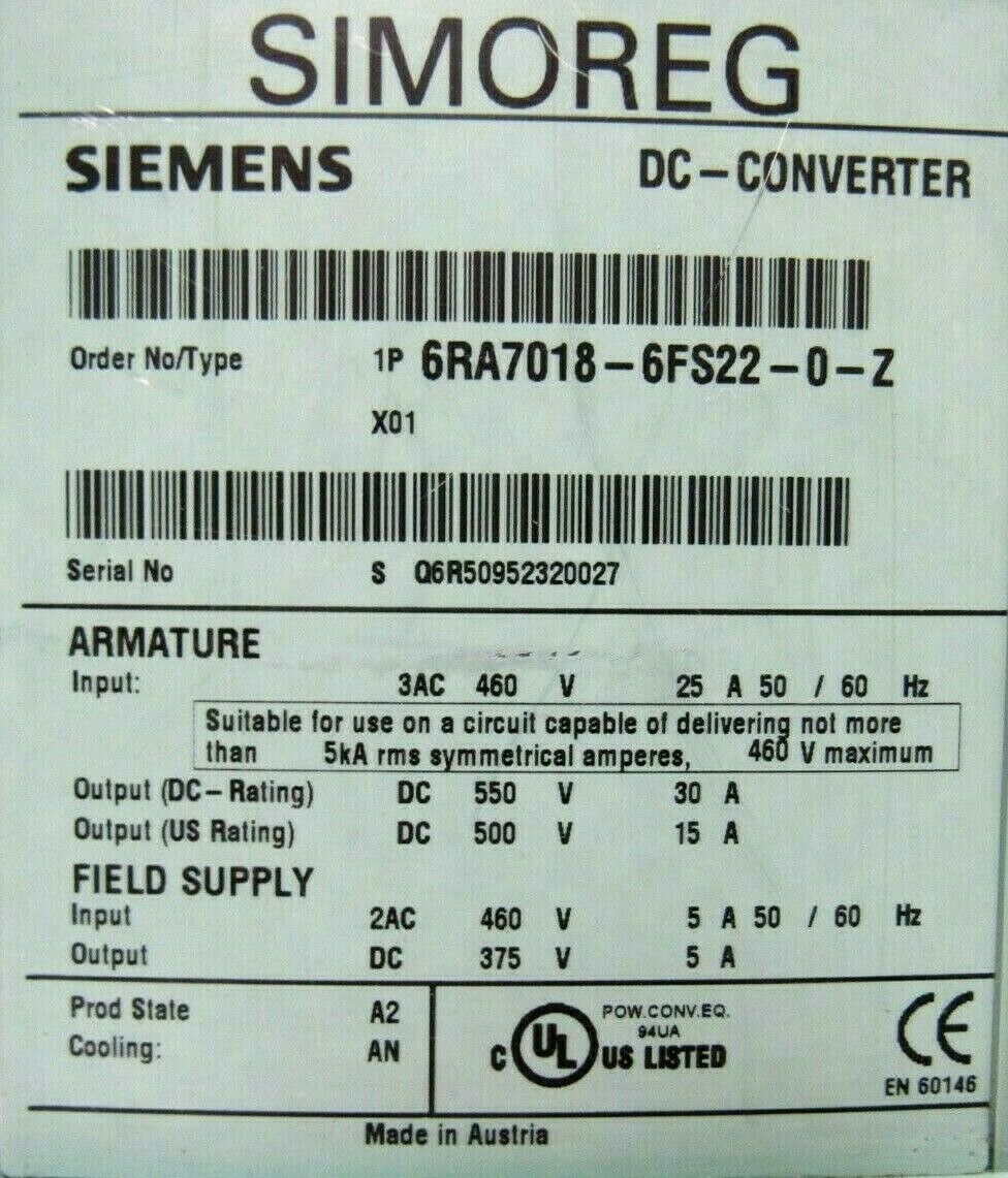USED SIEMENS 6RA7018-6FS22-0-Z DC CONVERTER 6RA70186FS220Z