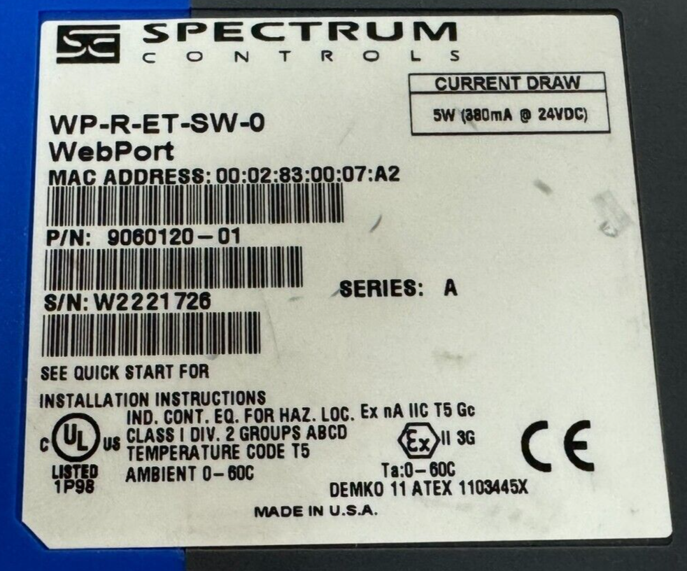 USED SPECTRUM CONTROLS WP-R-ET-SW-0 WEBPORT COMMUNICATION MODULE 9060120-01