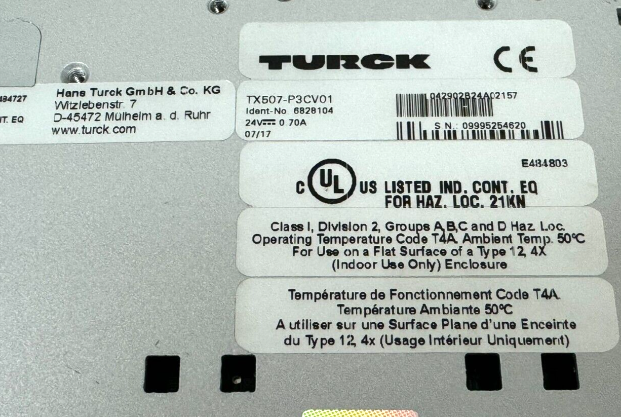 USED TURCK TX507-P3CV01 CODESYS 3 OPERATOR PANEL 6828104 TX507P3CV01