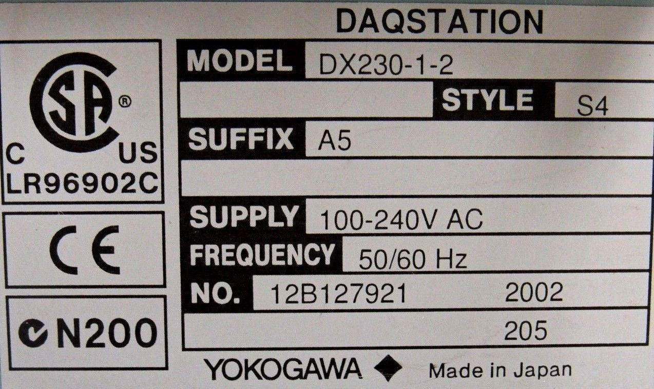 USED YOKOGAWA DX230-1-2 DAQSTATION CHART RECORDER DX23012 DX230-1-2-S4-A5