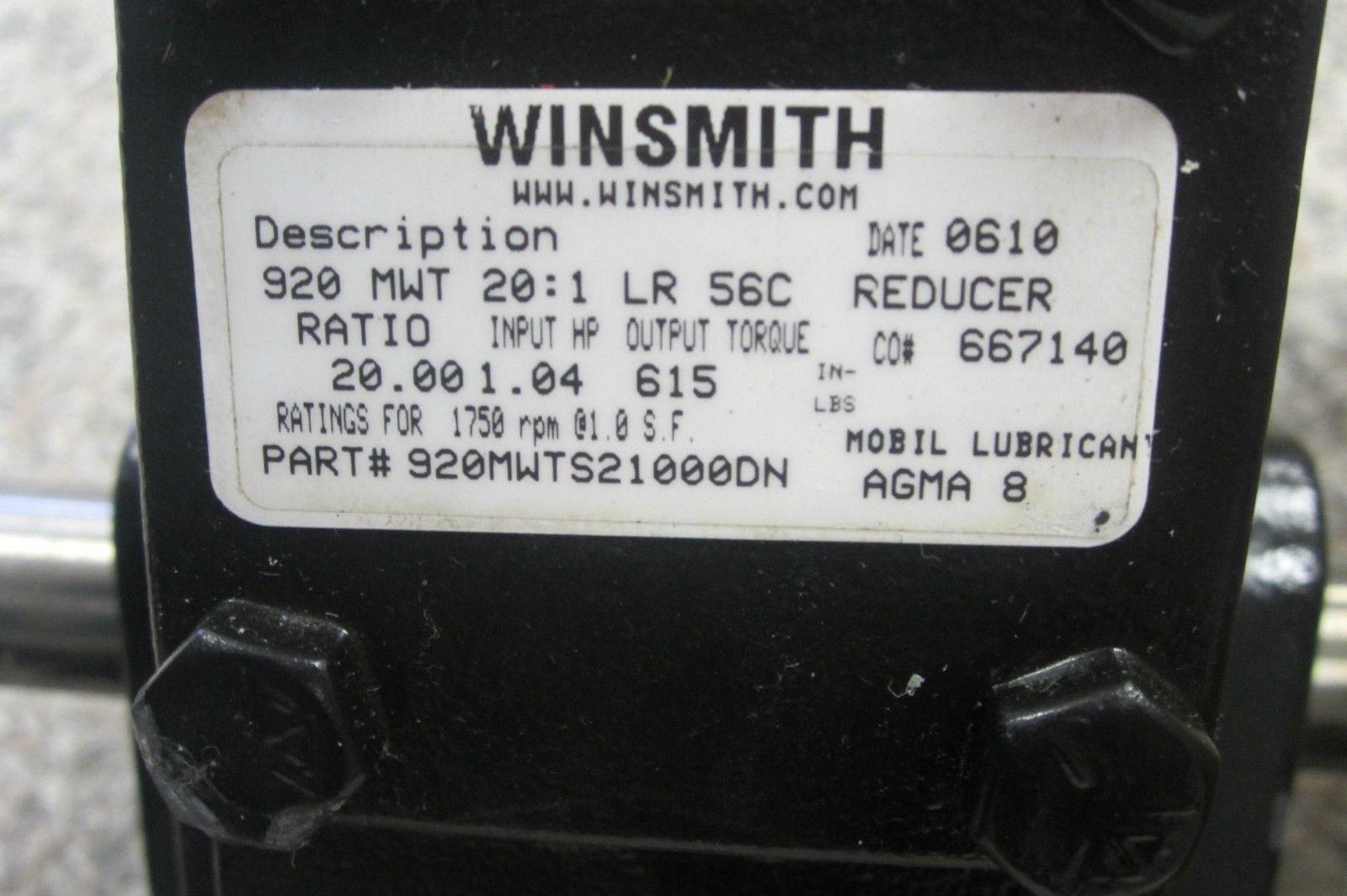 USED WINSMITH 920MWTS21000DN REDUCER 1750 RPM$200.00 Out of stock SKU: 170936949601 Categories: Other, Reducers Description Additional information Description USED WINSMITH 920MWTS21000DN REDUCER 1750 RPM BLDG. 2 SHELF 55 RB Additional information Weight 1 lbs We Buy New and Used Surplus Inventory - Sell to Us